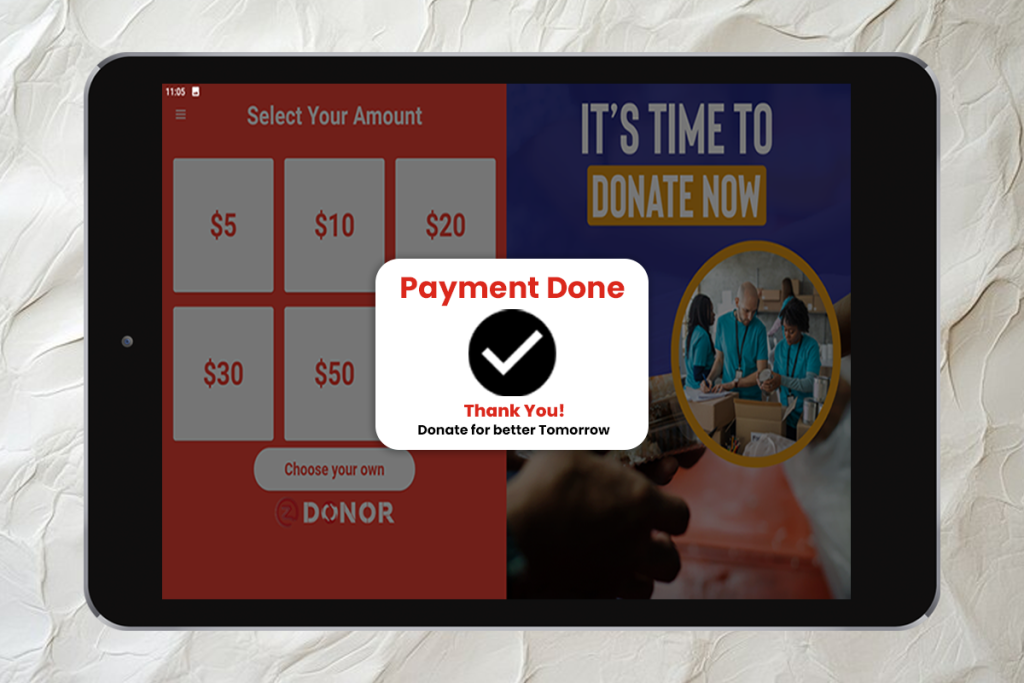 The Donation Kiosk is designed to be fully portable, making it easy to set up and move to different locations.